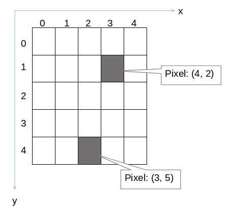 Pixels are arranged in a coordinate system, which usually starts in the top-left corner: